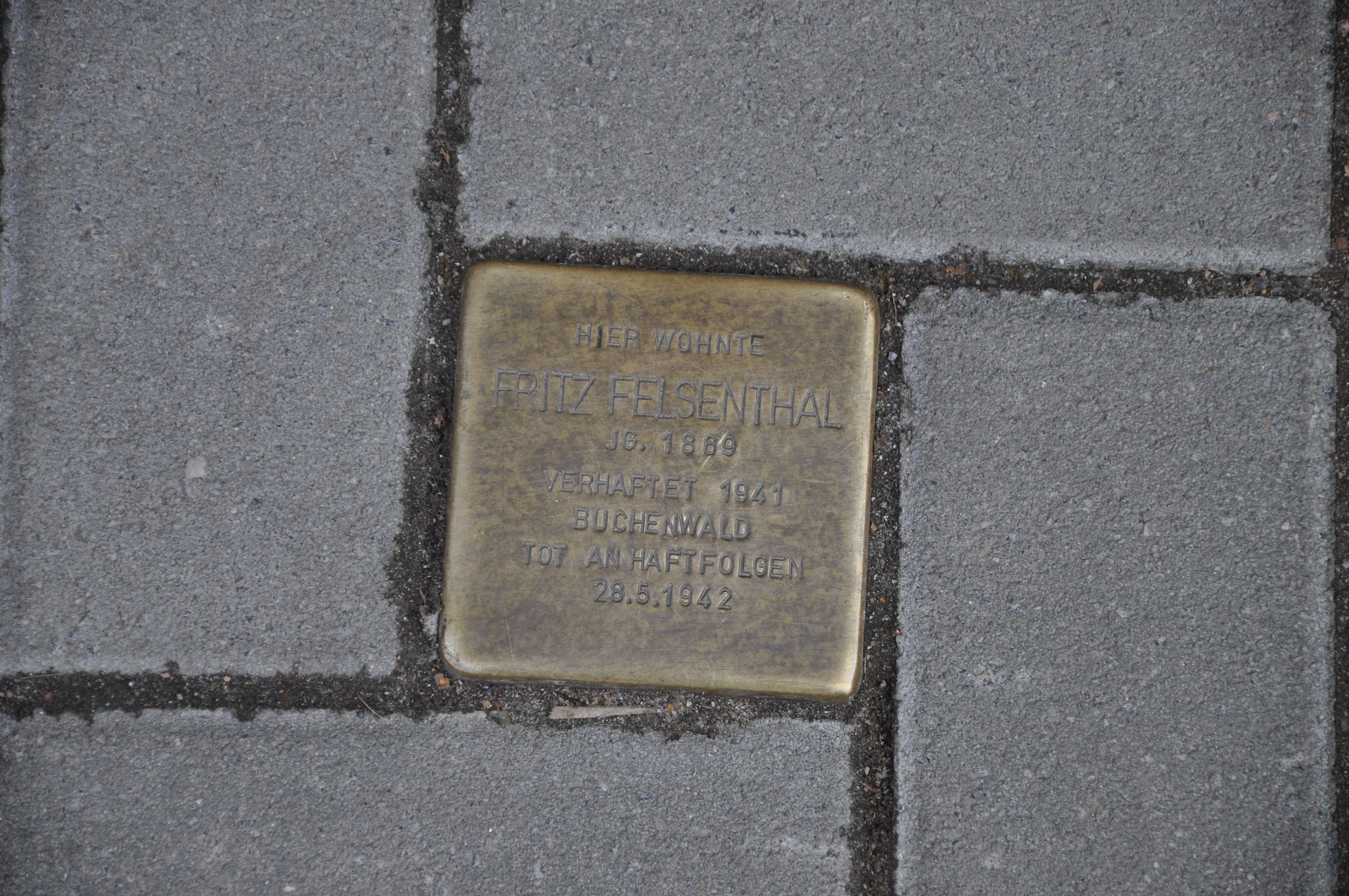 HIER WOHNTE FRITZ FELSENTHAL JG. 1869 VERHAFTET 1941 BUCHENWALD ERMORDET 28.5.1942 |